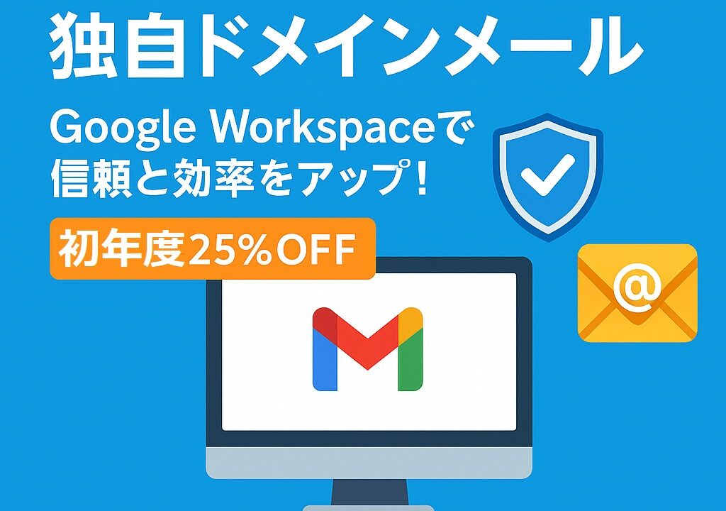 ムームードメインならGoogle Workspaceを独自ドメインで簡単設定!信頼性・効率・セキュリティを兼ね備えたビジネスメール環境を、今なら初年度25%OFFで導入可能。Gmail、カレンダー、AIサポート機能も完備。